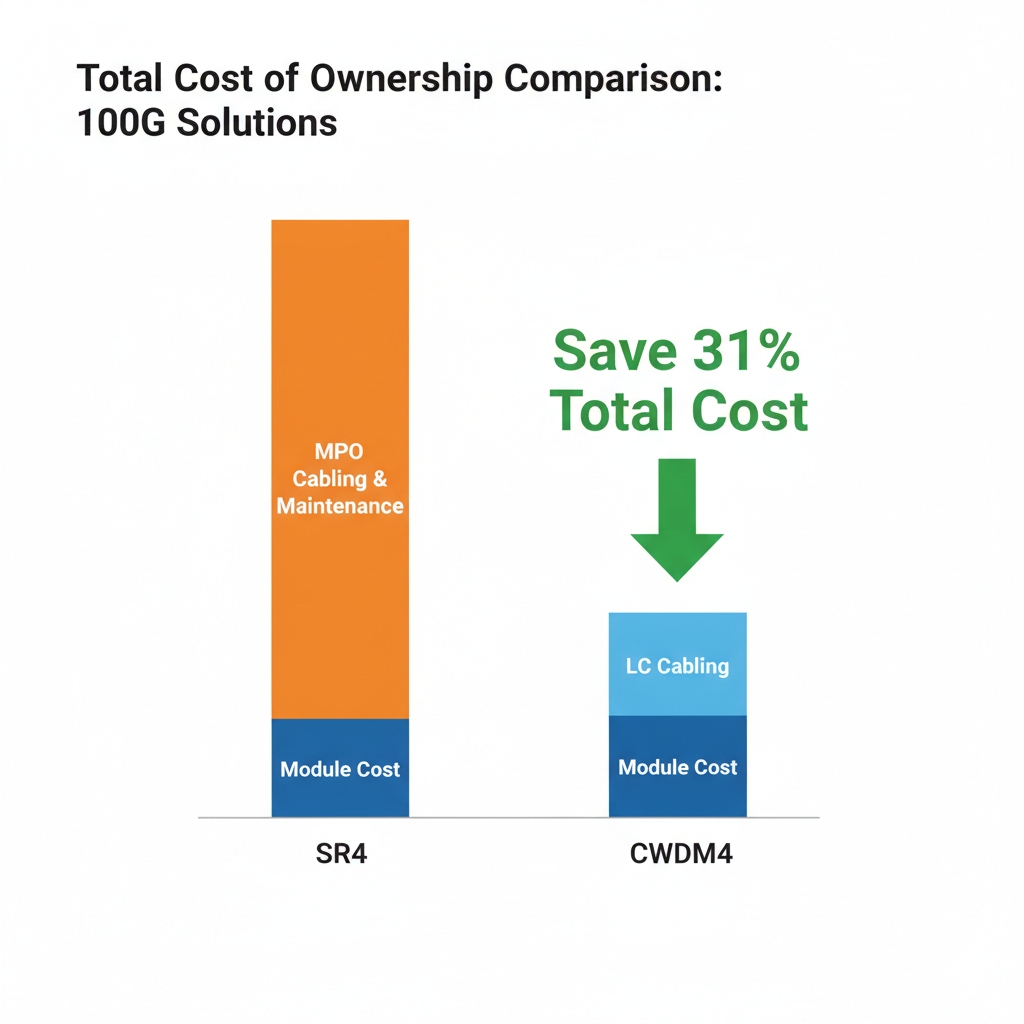 In these cases, switching to CWDM4 (QFP-CW31HG-02DC) with standard Duplex LC fiber can slash your Total Cost of Ownership (TCO) by 31%. You save on the cables, the cleaning tools, and the most expensive resource of all: your troubleshooting time.